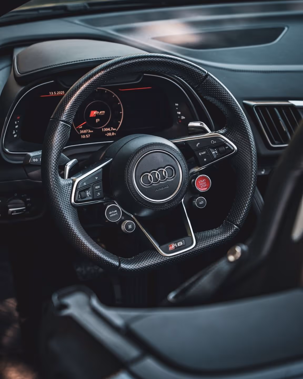 De Audi R8 Carbon is een indrukwekkende supercar met een agressief design en lichtgewicht carbon details. Onder de motorkap ligt een 5.2-liter V10 motor met ongeveer 620 pk. De auto sprint van 0-100 km/u in ongeveer 3,1 seconden en haalt een topsnelheid van circa 330 km/u, wat hem extreem snel maakt.
